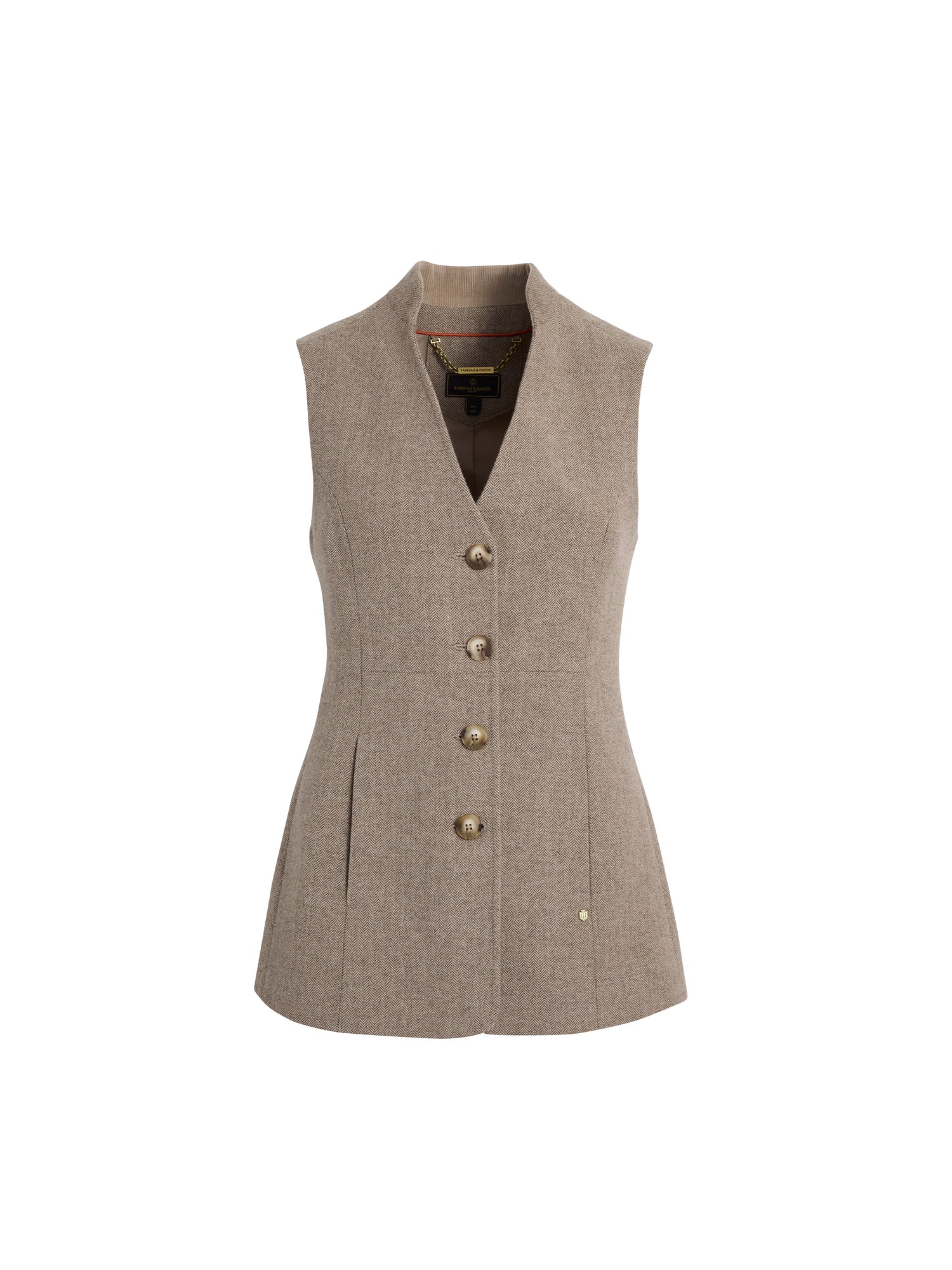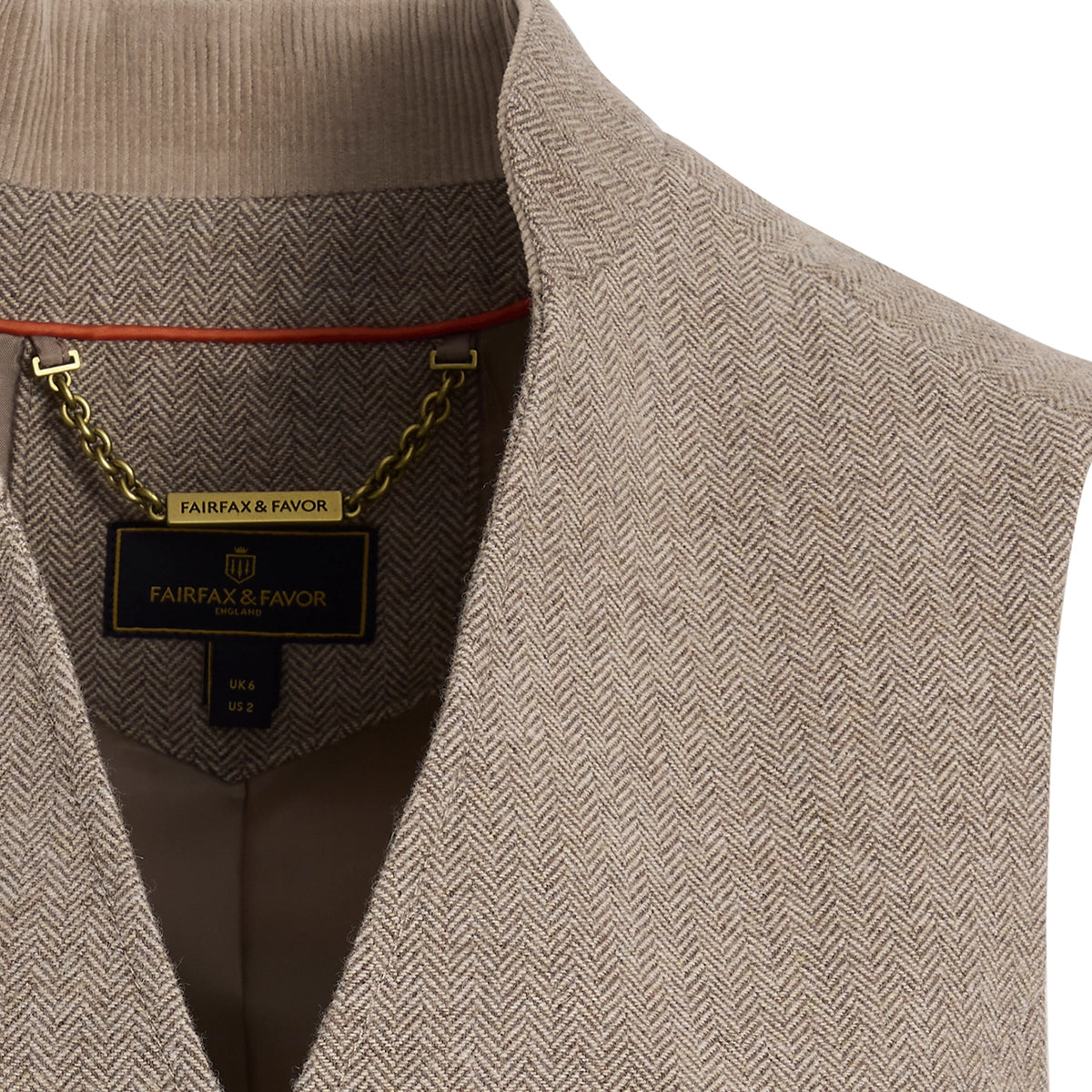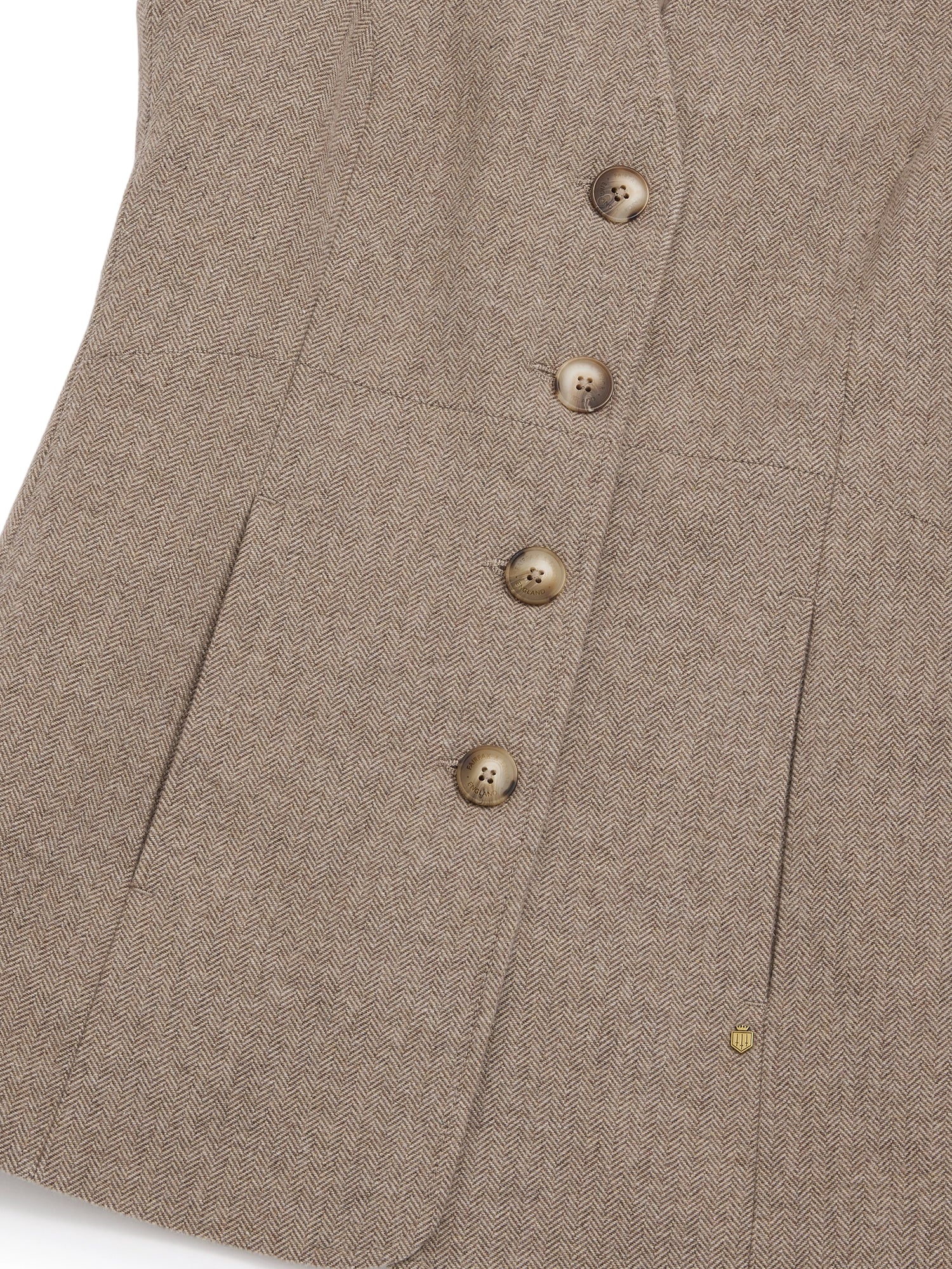 Individually handmade, the silhouette is clean with back waist detail to create shape at your waist. Expect signature Fairfax & Favor details including faux horn buttons, cord trims, chevron back yoke and antique brass hardware.